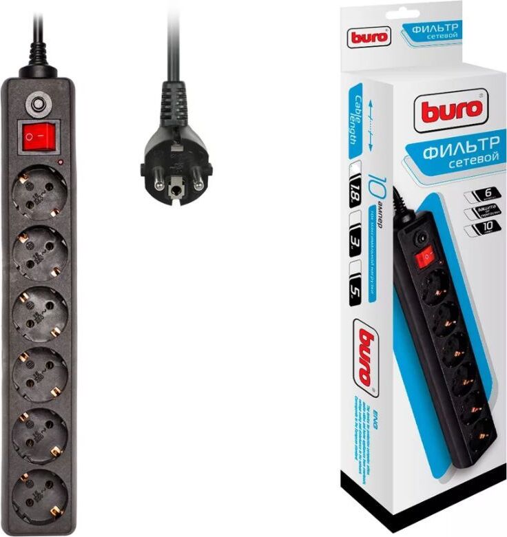 BURO 600SH-1.8-B 1.8м 6 розеток черный
