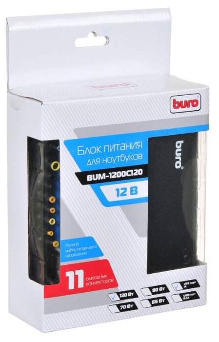 BURO BUM-1200C120 ручной 120W 15V-24V 8-CONNECTORS 6A 1XUSB 0.5A от прикуривателя
