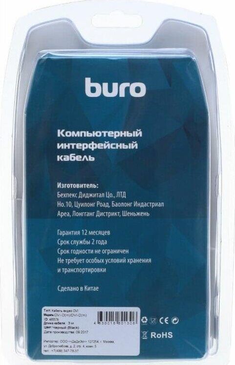 BURO Кабель DVI DVI-D (m) - DVI-D (m), GOLD , ферритовый фильтр , 3м, черный [bhp ret dvi30]