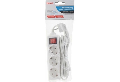 BURO Сетевой удлинитель BU-PS3.3/W 3м (3 розетки) белый (пакет ПЭ)