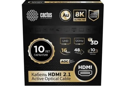 CACTUS Кабель аудио-видео CS-HDMI-AOC-2.1-10, HDMI (m) - HDMI (m), ver 2.1, 10м, GOLD, черный