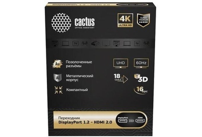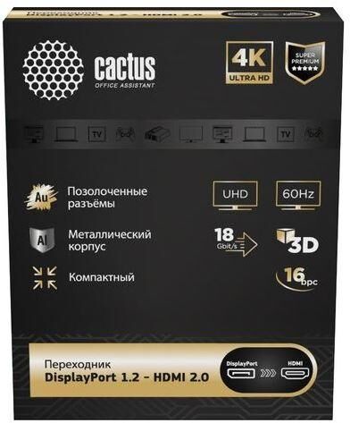 CACTUS Переходник аудио-видео CS-DP-HDMI-ADR, DisplayPort (m) - HDMI (f), ver 1.2, ver 2.0, GOLD, че