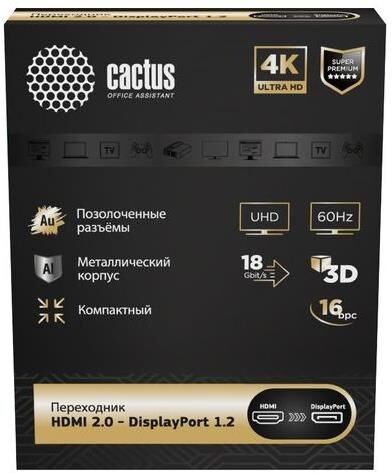 CACTUS Переходник аудио-видео CS-HDMI-DP-ADR, HDMI (m) - DisplayPort (f), ver 1.2, ver 2.0, GOLD, се
