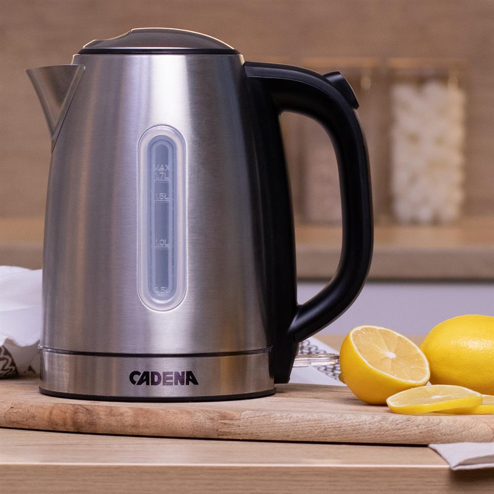Чайник электрический CADENA KC531M — прибор с корпусом из нержавеющей стали AISI 304, скрытым нагревательным элементом и LED-подсветкой расположенной по низу колбы голубого цвета и индикацией включения, корпус оборудован мерной шкалой. Устройство оснащено надежной контактной группой STRIX, имеет съемный фильтр от накипи. >Высокая мощность 1850 - 2200Вт >Корпус из нержавеющей стали AISI 304, устойчив к накипи и ржавчине, устойчив к механическому воздействию. >Мерная шкала уровня воды. >Большой объем 1,7л >Контактная группа Strix, надежность и долговечность >Вращается на 360, удобно пользоваться для правшей и левшей. >Широкая горловина, удобная очистка чайника >Фильтр от накипи на носике, легко снимается и очищается. >Подсветка прекрасно дополнят дизайн. >Индикация работы. >Скрытый кольцевой нагревательный элемет, равномерно распределяет нагрев, удобство в обсуживании. >Защита от старта без воды, отключение при закипании и снятии с подставки.