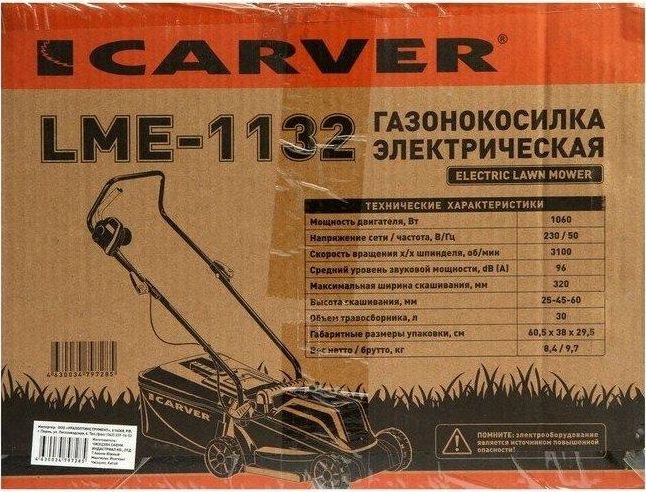 CARVER Газонокосилка роторная LME-1132 (01.024.00016) 1060Вт