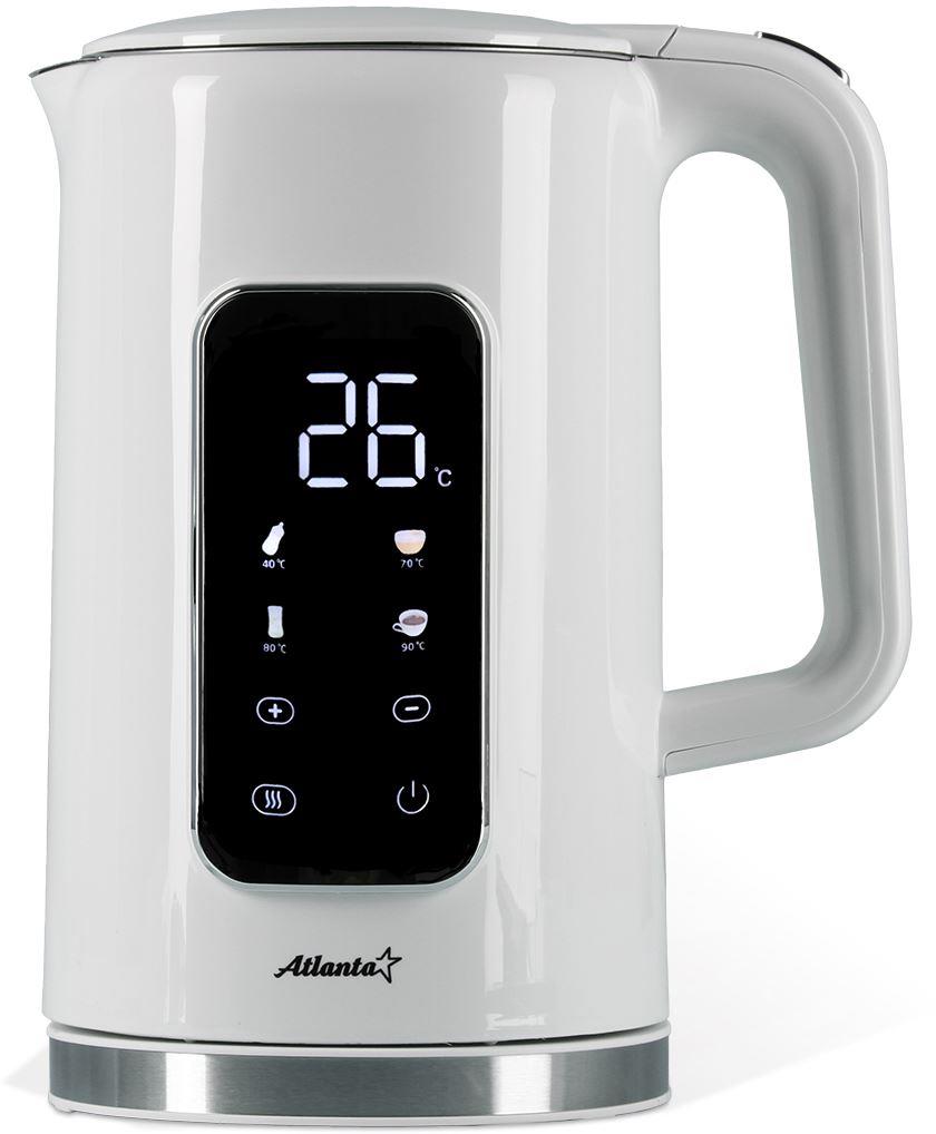 Электрический чайник ATH-2539 от Atlanta - это сочетание стиля и функциональности. ATH-2539 оснащен композитным двухслойным корпусом, внутренняя колба которого выполнена из пищевой нержавеющей стали 18/10. Это обеспечивает долговечность и безопасность использования. Чайник оснащен цифровым контролем температуры и 4 быстрыми температурными режимами. Вы можете выбрать один из них или настроить температуру вручную. Большой, яркий LED дисплей обеспечивает удобство использования и наглядность.