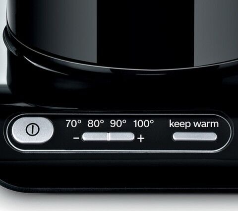 Объём 1.5 л. Мощность 2400 Вт. Терморегулятор, материал корпуса: металл/пластик. Нагревательный элемент скрытый. Установка темп. воды 70/80/90/100*С. Тип управления электронный. Цвет черный/нерж. сталь.