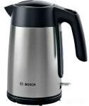 Электрический чайник Bosch TWK7L460 выполнен в серебристом цвете. Автоматическое открывание крышки и отключение прибора без воды обеспечивают безопасность эксплуатации. Угол поворота подставки составляет 360 градусов, что повышает комфорт использования. Ключевые преимущества: Закрытая спираль Индикация работы Отключение без воды Общие характеристики: Объем, л: 1.7 Мощность, Вт: 2400 Длина сетевого шнура, м: 0.8 Тип нагревательного элемента: закрытая спираль Материал корпуса: нержавеющая сталь Подставка Вес без упаковки, кг: 1.3 Особенности: Индикатор уровня воды Цоколь с поворотом на 360 градусов Фильтр: съемный Безопасность: Автоматическое отключение при закипании Автоматическое отключение при снятии с цоколя Защита от перегрева Отключение без воды