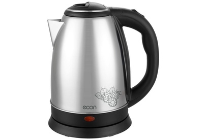Чайник металлический, Мощность 1850 Вт, объем 1.8 литра, Дисковый нагревательный элемент, Отключение при закипании, Отключение при отсутствии воды, Вращение на подставке на 360 градусов.