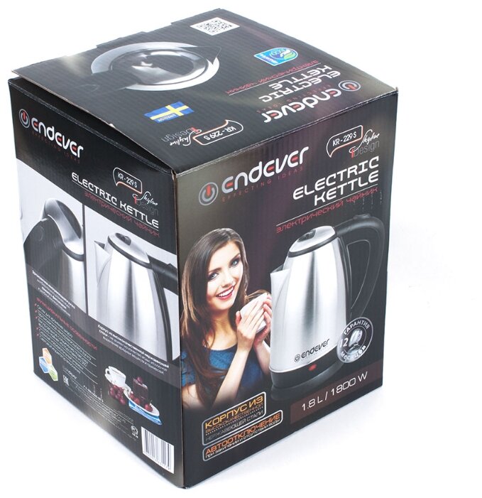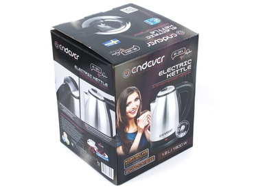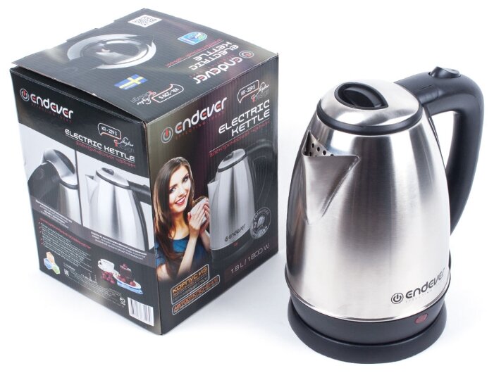 Чайник электрический Endever Skyline KR-229S, черный/стальной, мощность 1800 Вт, емкость-1,8л, матовый стальной корпус