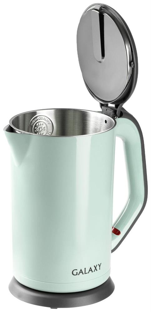 GALAXY GL 0330 САЛАТОВЫЙ Номинальная потребляемая мощность 2000 Вт Объем 1,7 л Скрытый нагревательный элемент Двойная стенка из нержавеющей стали 18/10 и пищевого пластика Автоотключение при закипании Автоотключение при отсутствии воды Указатель минимального и максимального уровня воды Индикатор работы Длина шнура питания 78 см