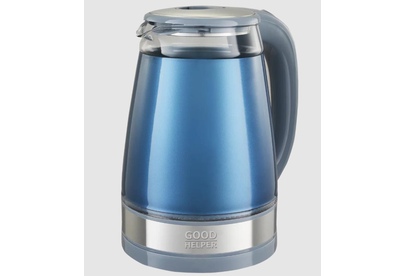Двухстеночный стеклянный чайник. Автовыключение при закипании; Защита от включения без воды; Защита от перегрева; Поворачивающийся корпус (360°); Дисковый нагревательный элемент; прозрачный корпус с термоизоляцией; Внутреняя колба - боросиликатное стекло; Внешняя колба - деодорированный прозрачный пластик; Индикация включения; Металлическая защита крышки; Объем 1.8л; Мощность 1800Вт.; Рабочее напряжение 220В * 50Гц.