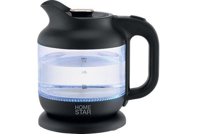 Объем 1,2 л Корпус из термостойкого боросиликатного стекла Шкала уровня воды Светодиодная внутренняя подсветка Закрытый нагревательный элемент из нержавеющей стали Поворот на подставке 360° Защита от работы без воды Автоматический выключатель Мощность 1370-1630 Вт Длина шнура 74 см