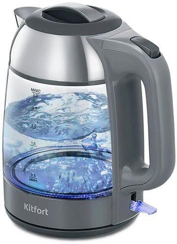 Электрический чайник КТ-6762 предназначен для кипячения воды дома, в офисе, на даче. Полный чайник закипает примерно за 9 минут. Чайник автоматически отключается при закипании, имеет защиту от перегрева и от включения без воды. Колба чайника выполнена из стекла, а крышка и корпус из нержавеющей стали и пластика, что позволяет ему долго сохранять температуру внутри. Крышка чайника полностью съёмная. Чтобы запустить кипячение, необходимо нажать кнопку, расположенную на ручке чайника, после чего зажжётся подсветка у основания устройства. КТ-6762 имеет функцию поддержания температуры до 90°С, чтобы её задействовать – нажмите кнопку, расположенную у основания чайника, после чего она засветится. Подставка с центральным контактом даёт возможность располагать на ней чайник в любом положении, обеспечивая вращение на 360°. Снизу имеется отсек для хранения шнура, в который можно смотать излишки шнура электропитания, чтобы он не мешал на столе. Характеристики: Тип: чайник Применение: бытовое Возможность подключения к вод