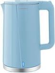 MGK-633 - это компактный электрический чайник с двойными стенками. Преимущества: Главное преимущество чайника с двойными стенками - внешний корпус не греется, и остается холодным. Только что вскипевший чайник безопасен, об него невозможно обжечься. Кроме того, благодаря двойным стенкам, вода остывает намного медленнее. Корпус прибора устроен по принципу термоса: чайник имеет две стенки, между которыми есть воздушная прослойка. Такая конструкция помогает сохранять воду горячей. Характеристики: Объем: 1.7 л Максимальная мощность: 2200 Вт Тип управления: механический Нагревательный элемент: скрытый Мерная шкала: да, с указанием уровней: 0.5/1.0/1.2/1.7 л Корпус с двойными стенками: да Материал: нержавеющая сталь/пластик Автоматическое отключение при закипании: да Защита от выкипания: да Индикация включения: да Возможность вращения на 360°: да Длина шнура: 75 см Габариты (ВхШхГ): 26х21х15.1 см Вес: 0.98 кг Цвет: голубой