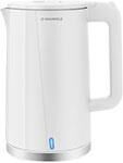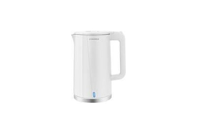 MGK-633 - это компактный электрический чайник с двойными стенками. Преимущества: Главное преимущество чайника с двойными стенками - внешний корпус не греется, и остается холодным. Только что вскипевший чайник безопасен, об него невозможно обжечься. Кроме того, благодаря двойным стенкам, вода остывает намного медленнее. Корпус прибора устроен по принципу термоса: чайник имеет две стенки, между которыми есть воздушная прослойка. Такая конструкция помогает сохранять воду горячей. Характеристики: Объем: 1.7 л Максимальная мощность: 2200 Вт Тип управления: механический Нагревательный элемент: скрытый Мерная шкала: да, с указанием уровней: 0.5/1.0/1.2/1.7 л Корпус с двойными стенками: да Материал: нержавеющая сталь/пластик Автоматическое отключение при закипании: да Защита от выкипания: да Индикация включения: да Возможность вращения на 360°: да Длина шнура: 75 см Габариты (ВхШхГ): 26х21х15.1 см Вес: 0.98 кг Цвет: белый
