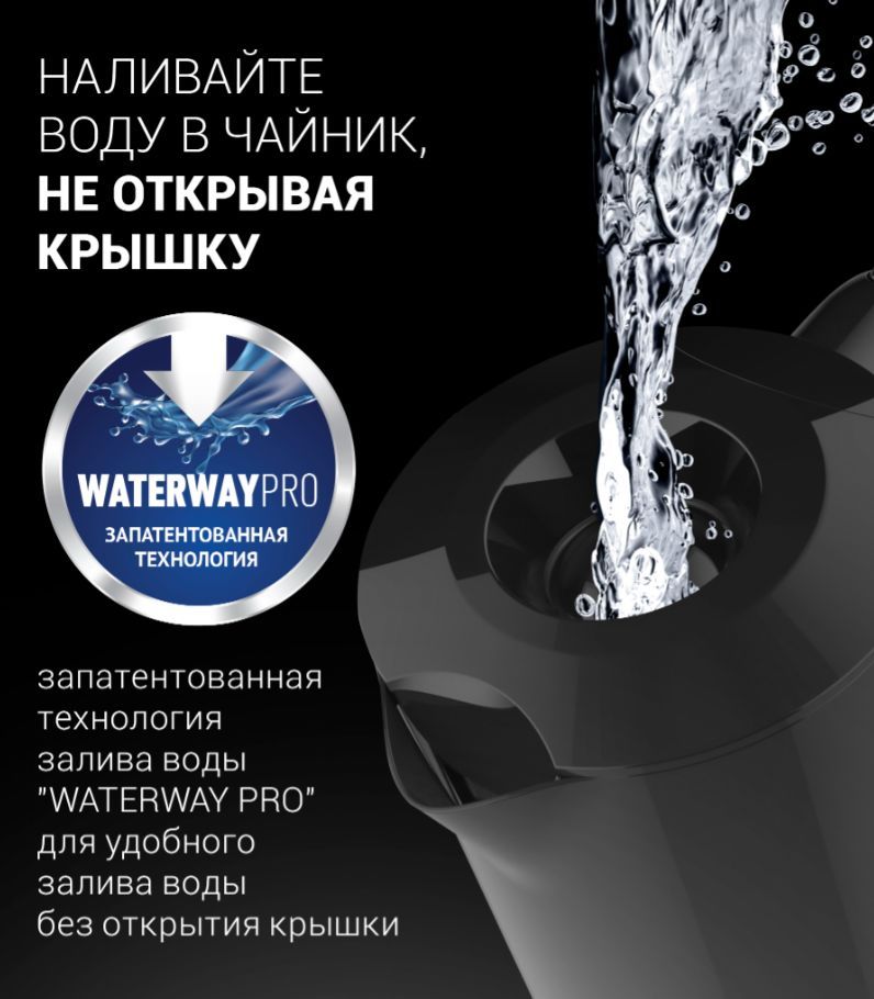 Мощность 1850 Вт, 2200 Вт.Объем, 1,80 л. Запатентованная технология “WATERWAY PRO” – наливайте воду в чайник без открытия крышки.Английский контроллер Strix обеспечивает 15 000 циклов кипячения, что равно 10 годам интенсивного использования.Корпус из высококачественного пластика.Индикатор уровня воды.Блокировка включения без воды.