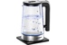 Чайник электрический. Максимальный объем: 2,2 литра, Мощность: 1800Вт, Нагревательный элемент: скрытый, Материал корпуса: стекло, Габариты упаковки (ед) ДхШхВ: 215x185x290 мм, Индикация: включения, уровня воды, Безопасность: автоотключение, защита от включения без воды, Конструктивные особенности: кнопка открытия крышки, подсветка воды, подставка 360, Срок гарантии: 12 мес. Цвет: Серебро/черный
