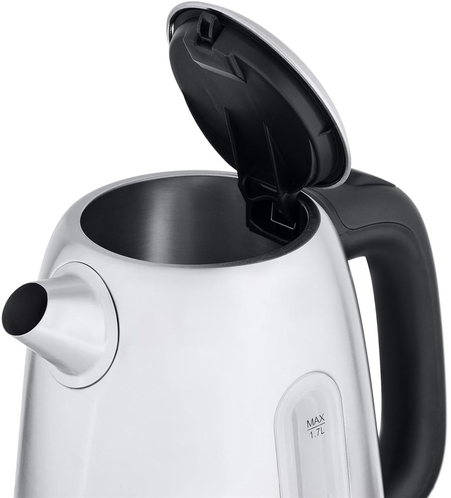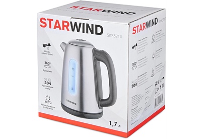 Мощность 2200 Вт Максимальный объем 1,7 л Скрытый нагревательный элемент Индикатор уровня воды Автоматическое отключение Кнопка открытия крышки Подставка 360 градусов Защита от включения без воды Подсветка воды Материал корпуса - металл и аустенитная сталь Цвет серебристый Срок гарантии 12 мес