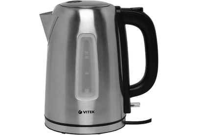 Чайник электрический. Объем: 1,7 литра, Мощность: 2200Вт, Индикатор уровня воды, Индикация включения, Материал корпуса: нержавеющая сталь, Отсек для хранения шнура. Цвет: Серебро/черный