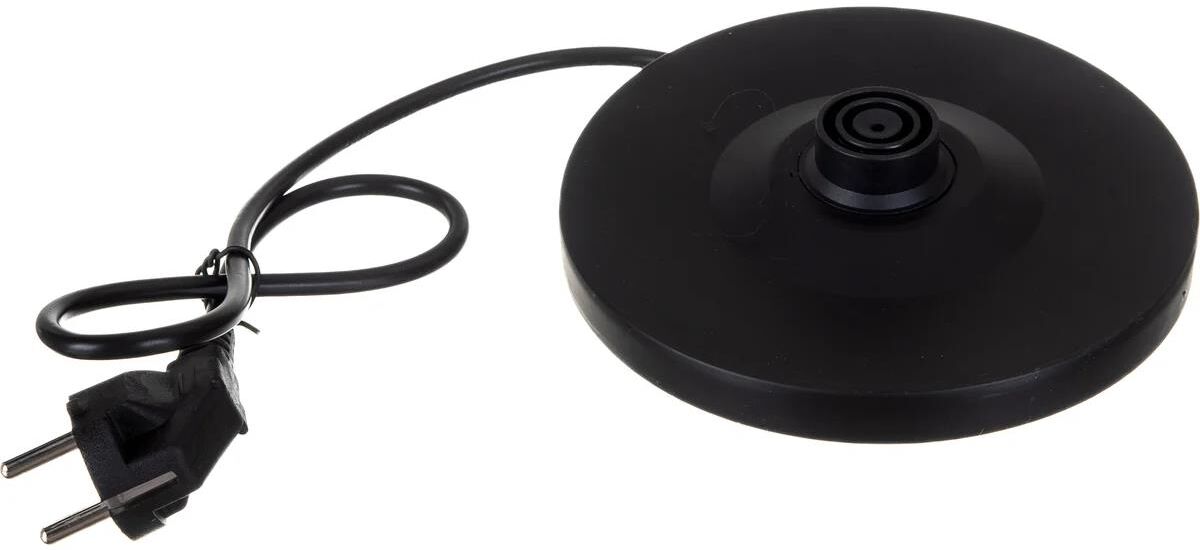Объем 1,8 л, Номинальная потребляемая мощность 1500 Вт, Вращение корпуса на 360°, Цвет базы, крышки и ручки: черный, Закрытый нагревательный элемент из нержавеющей стали, Отметка максимального уровня воды внутри корпуса, Световой индикатор работы, Отсек для хранения электрошнура, Автоматическое отключение при закипании, Блокировка включения без воды.