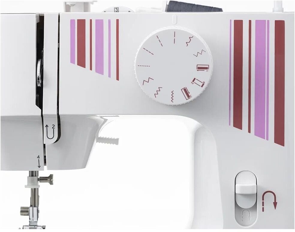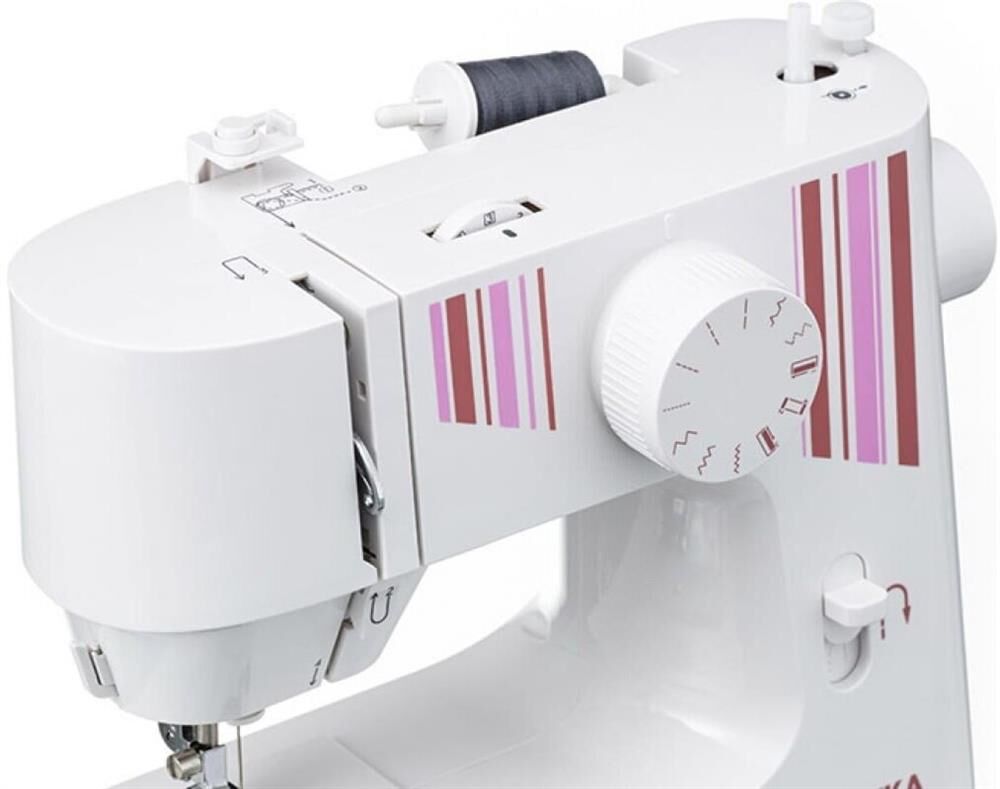 электромеханическая, челнок - горизонтальный, швейных операций - 10, петля - полуавтомат. Мощность двигателя 7.2 Вт. Максимальная скорость шитья 300 ст/мин. Максимальная длина стежка 3.6 мм. Максимальная ширина строчки 3 мм.