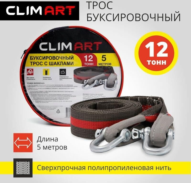 CLIM ART Трос буксировочный с шаклами CA 12т, 5м в сумке