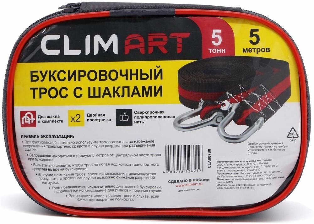CLIM ART Трос буксировочный с шаклами CA 5т, 5м в сумке