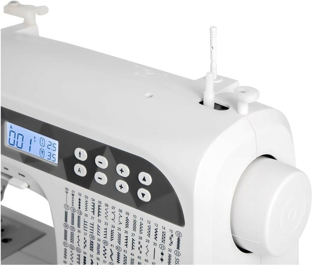 200 операций, 9 видов петель, жк дисплей, нитевдеватель , горизонтальный челнок, русск./англ. алфавит, плавная регулировка скорости на корпусе, регулятор давления лапки, нитевдеватель, возможность шитья двойной иглой, возможность шитья без педали.