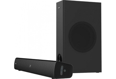 Мощность сабвуфера: 40. Мощность центральной колонки: 40. Суммарная звуковая мощность: 80. Основной цвет: черный. Акустический тип: 2.1. Линейный вход (стерео): есть. Стерео-вход AUX INPUT: есть. Пульт ДУ: беспроводной. Общий вес: 5.3. Отношение сигнал/шум: 75. Тип электропитания: от сети. Размеры НЧ динамика (сабвуфер): 133.4. Выход фазоинвертора: на передней панели. Возможность крепления к стене: есть. Расположение регуляторов: на боковой панели/ на пульте ДУ. Цифровой вход, оптический: есть. Габариты упаковки (ед) ДхШхВ: 0.751x0.43x0.19. Вес упаковки (ед): 7.84. Гарантия: 12 мес.. Частотный диапазон: 55 Гц - 20 КГц. Размер центральной колонки (ШхВхГ): 680 х 78 х 100 мм. Размер сабвуфера (ШхВхГ): 116 х 423 х 250 мм. Тип: 2.1. Регуляторы: на боковой панели/ на пульте ДУ. Суммарная звуковая мощность: 80 Вт. Питание: от сети. Цвет: черный
