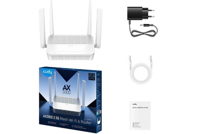 CUDY Wi-Fi роутер WR3000P, Wi-Fi 6, AX3000, 2.4/5ГГц, 4 LAN, 1xUSB, белый