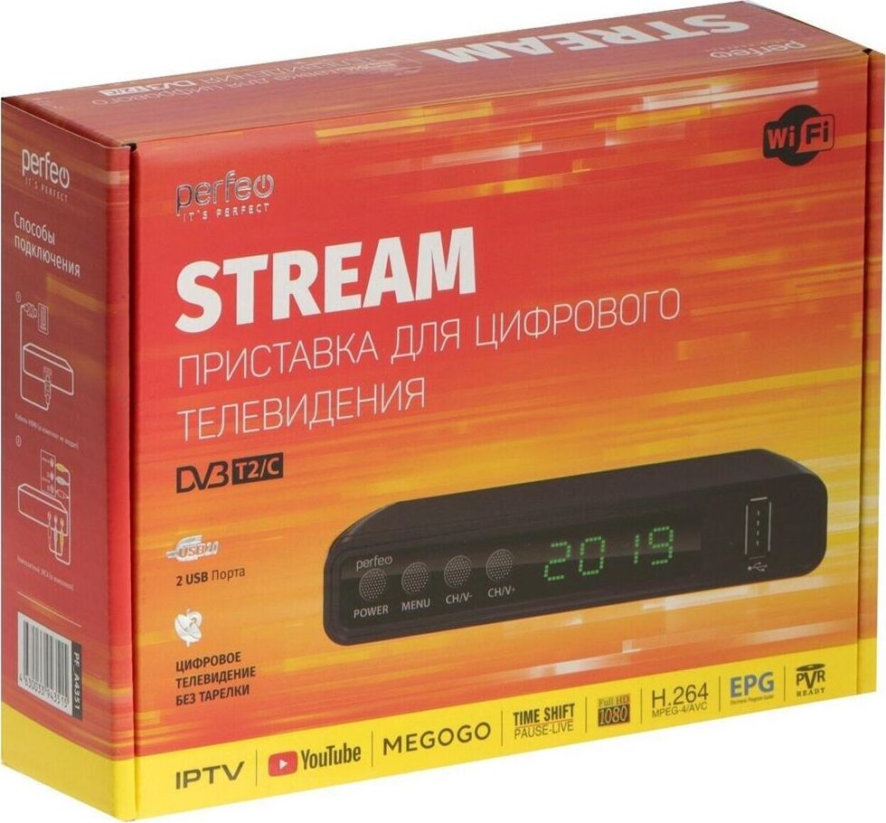 Цифровая приставка PERFEO (PF-A4351) STREAM DVB-T2/C