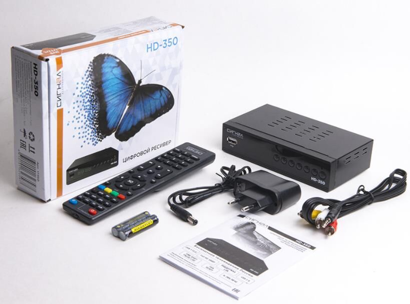 Особенность этого ресивера в возможности подключения к интернету с помощью LAN порта. Можно напрямую подсоединить кабель, установив сетевое соединение. Также в приставке есть IR разъем, который позволяет подключить выносной инфракрасный датчик для управления с ДУ-пульта ресивером, скрытым из виду. На ресивере расположены следующие разъемы: антенный вход, 2 USB-разъема, HD OUT, композитный аудио-видео выход, IR, LAN, разъем для подключения внешнего блока питания. Также на переднем дисплее есть кнопки управления громкостью, М - выход в меню и кнопка ОК.HD-350 оснащен чипсетом GX6702, поддерживает диапазон частот 174-862МГц. Поддержка DOLBY DIGITAL. Также вы можете наслаждаться видео с разрешением до 1080p.Корпус из металла, размер 148*80*35 мм. Рабочая мощность составляет 7,5Вт, входное напряжение 220В 50ГЦ, БП 5В 2А.Товар сертифицирован. В комплектацию HD-350 входит: ресивер цифровой, обучаемый пульт ДУ, э/п ААА -2шт, шнур 3RCA-3.5Jack, инструкция, гарантийный талон и внешний блок питания