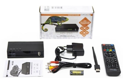 Обратите внимание на новую модель в линейке ресиверов СИГНАЛ - HD-250. Это высококачественный ТВ ресивер с обучаемым пультом управления в комплекте (можно с одного пульта управлять и ресивером, и телевизором). HD-250 подходит для приема ЭФИРного цифрового телевидения в формате DVB-T/T2/C. Его яркая упаковка не останется незамеченной на полке магазина. Сам ресивер выполнен из пластика и в лаконичном дизайне. Особенность этого ресивера в его комплектации. Вместе с устройством вы получаете USB Wi-Fi адаптер 7601. Это позволяет телевизору с помощью ресивера подключаться к беспроводной сети. Так с TV устройства можно выходить в интернет. На ресивере расположены следующие разъемы: антенный вход, 2 USB-разъема, HD OUT, композитный аудио-видео выход, разъем для подключения внешнего блока питания. HD-250 оснащен чипсетом GX6701. Поддерживает диапазон частот 174-862МГц. Ресивер имеет размер 120х64х28мм. Рабочая мощность составляет 6Вт. Входное напряжение 220В 50ГЦ, БП 5В 2А. Наш ресивер - идеальный выбор для вас! Товар
