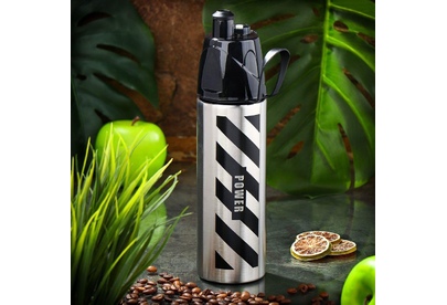 Термобутылка для воды нерж, 0.5 л, колба нерж, с распылителем, серо-черные,