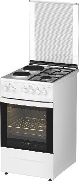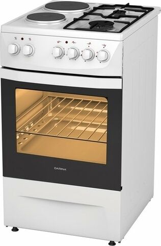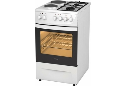 (ШxВxГ) 50x85x60см.Цвет белый. Комбинированная. 2 газ.+2электр. конфорки. Электр. духовка 50л. Интегрированный розжиг горелок стола, терморегулятор, 5-позиционный переключатель режимов жарочного шкафа, освещение, хоз. отсек. Стекл. крышка. К-кт Exstra effect.