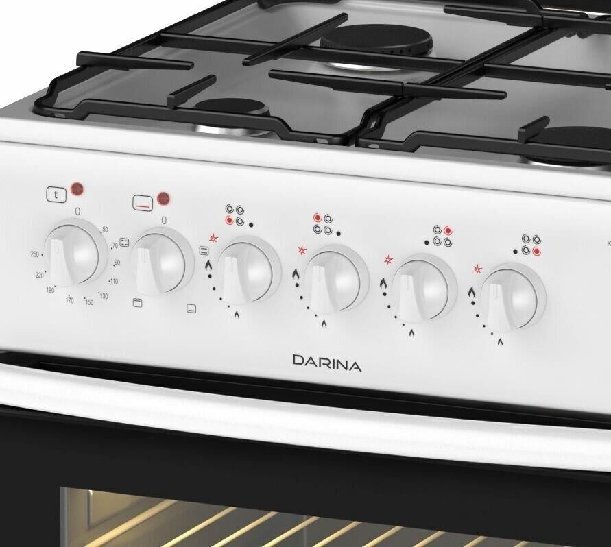 (ШхГхВ) 50х50х85см.Вар.панель газовая.Тип нагревательного элемента горелки classic.Цвет белый.Тип духовки электрическая.Обьем духовки 50 л.Кол.режимов духовки 4.Комплектация духовки: эл.вертел,подсветка,терморегулятор,комплект Extra Effect (поддон,противень),решетка.Ручки управления поворотные.Выдвижной ящик.Регулируемые опоры.