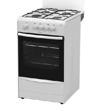 (ШхГхВ) 50x56x85 см.Цвет белый.Варочная панель газовая.Газ-контроль духовки.Очистка традиционная.Раб. поверхность эмаль.Количество конфорок 4,быстрого разогрева 1.Обьем духовки 50 л.Дверца откидная.Ящик для посуды.