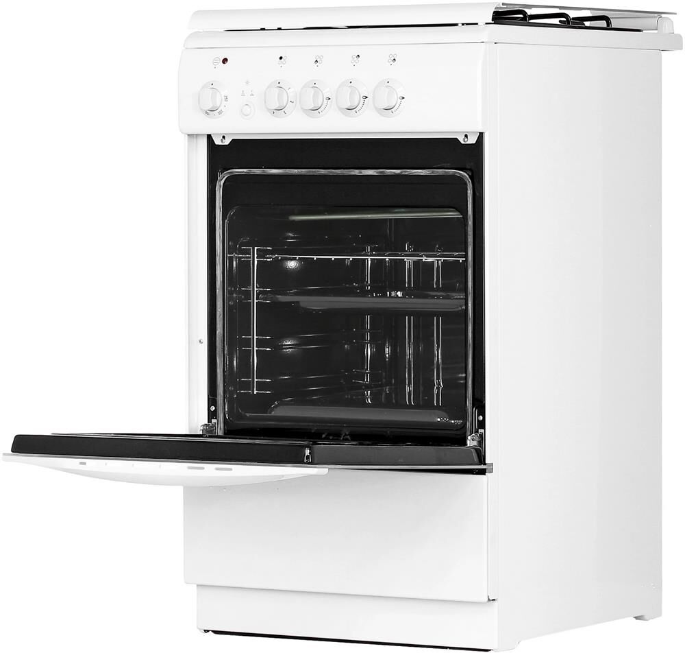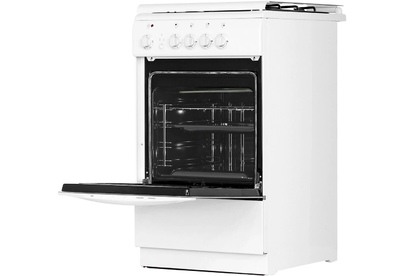 Габариты 850*500*600 Вес, кг - 38 Объём духовки 54 л. Основные характеристики варочной поверхности: 3 газовые конфорки 1,0/1,7/3,0 кВт 1 электрическая конфорка 1,5 кВт Основные характеристики духового шкафа: Электрическая духовка Нижний ТЭН - 1,2 кВт Верхний ТЭН - 0,8 кВт Терморегулятор Освещение Комплектация: Большой противень Малый противень Решётка для жарки Эмалированная решётка Стеклянная крышка рабочего стола Хозяйственный отсек Техническое описание: Цвет - белый