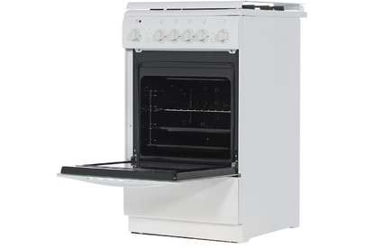 Габариты 850*500*600 Вес, кг - 37 Объём духовки 54 л. Основные характеристики варочной поверхности: Электророзжиг 4 газовые конфорки 1,0/1,7/1,7/3,0 кВт Основные характеристики духового шкафа: Электрическая духовка Нижний ТЭН - 1,2 кВт ТЭН верхний/гриль - 0,8 кВт/1,8 кВт Терморегулятор Освещение Вертел Гриль Механический таймер Комплектация: Большой противень Малый противень Решётка для жарки Чугунная решётка Стеклянная крышка рабочего стола Хозяйственный отсек Техническое описание: Цвет - белый