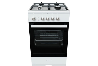 Размеры, мм - высота/ширина/глубина – 850/500/600 * Цвет - белый, стеклянный фасад * Вес, кг – 39 * Основные характеристики варочной поверхности: 4 газовые конфорки 1,0/1,75/1,75/3,0 кВт. Электророзжик раб.стола * Основные характеристики духового шкафа: Горелка основная 2,5 кВт с УКП. Газ-контроль. Объём духовки 54 л. * Чугунная решётка * Хозяйственный отсек *