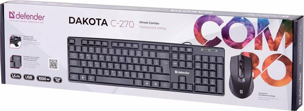 Проводной мультимедийный набор (клавиатура + мышь), клавиатура: количество клавиш - 104+3, интерфейс подключения - USB, усиленная конструкция, классическая раскладка, ; мышь - количество кнопок - 2+колесо прокрутки, разрешение - 1000 dpi, длина кабеля - 1,5 м
