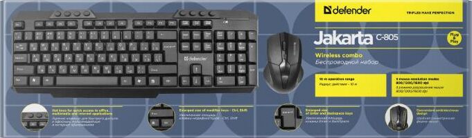 Комплект работает от одного приемника Удобная симметричная форма мыши - Удобна для работы любой рукой Классическая раскладка - Полноразмерная клавиша Enter Горячие клавиши для быстрого доступа к офисным, мультимедийным и интернет приложениям Удобное расположение мультимедийных клавиш Увеличенная площадь клавиш-модификаторов (Ctrl, Shift), клавиш Enter и BackSpace 3 режима разрешения мыши 800/1200/1600 dpi - Кнопка смены разрешения позволяет менять скорость курсора мыши одним нажатием (800/1200/1600 dpi) Угол наклона клавиатуры регулируется с помощью ножек Радиус действия - 10 м Легкая установка. Для работы не нужны драйверы