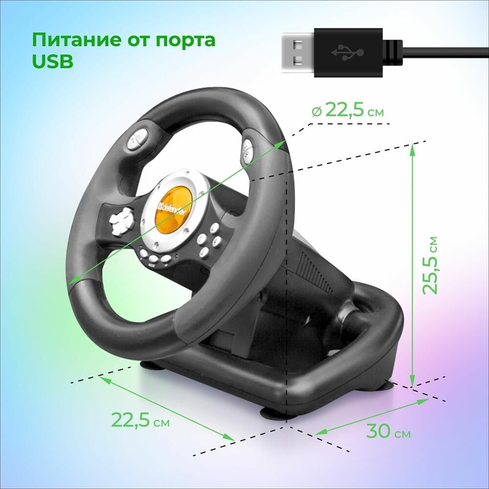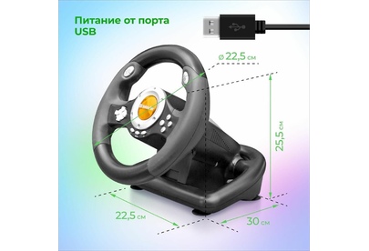 Тип подключения: проводной . Поддерживаемые платформы: ПК Интерфейс: USB Диаметр рулевого колеса: 225 мм. Угол поворота рулевого колеса: 180 ° Тип #