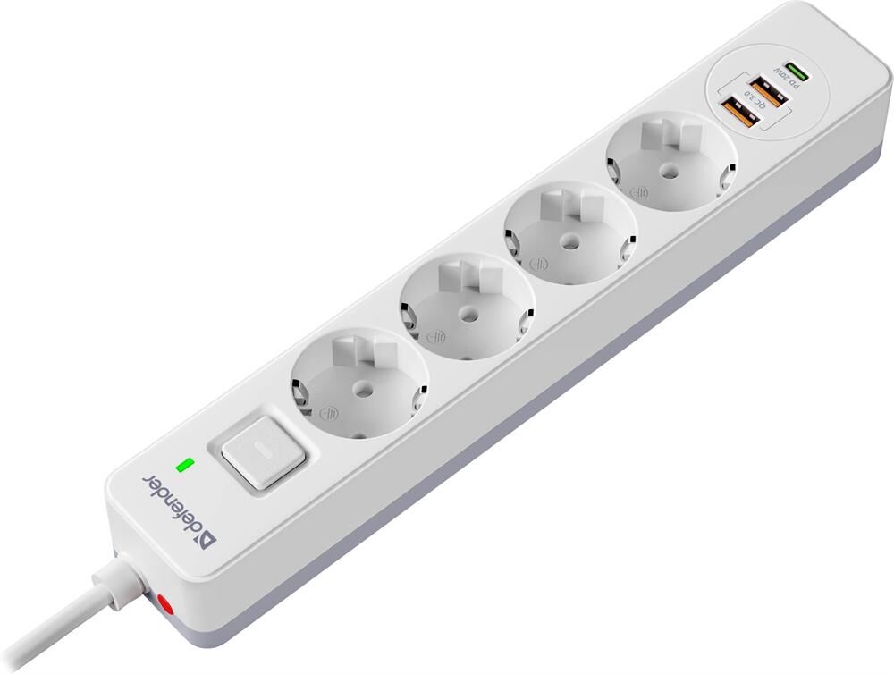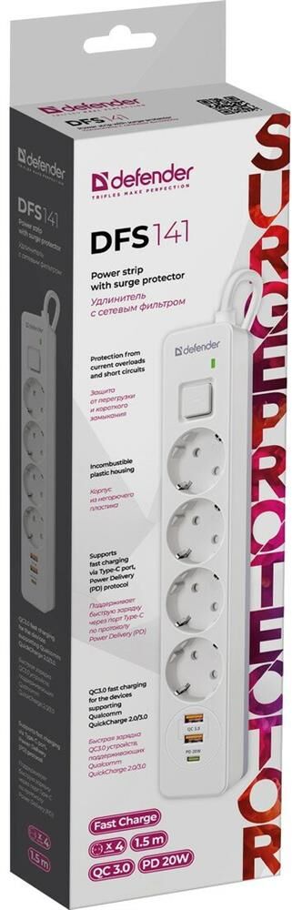 Удлинитель с сетевым фильтром, Номинальное напряжение/частота 230 В / 50 Гц; Максимальная суммарная мощность нагрузки 3680 Вт ;Максимальный ток нагрузки 16 А ;Количество розеток 4 шт. ;Заземление есть; Тип розеток Евростандарт Защитные шторки; Длина 1.5 м Кнопка включения/выключения питания; Защита от перегрузки и короткого замыкания; Отдельный автоматический несгораемый предохранитель Максимальная рассеиваемая энергия 380 Дж; Тип вилки Евростандарт USB-порт для зарядки устройств ; Количество портов USB Type-A 2 шт.