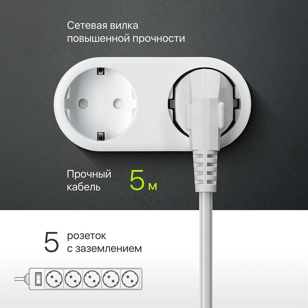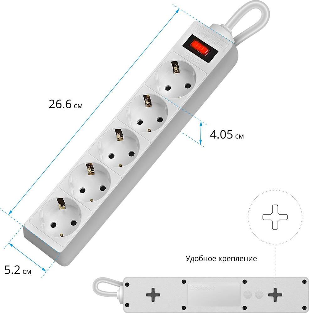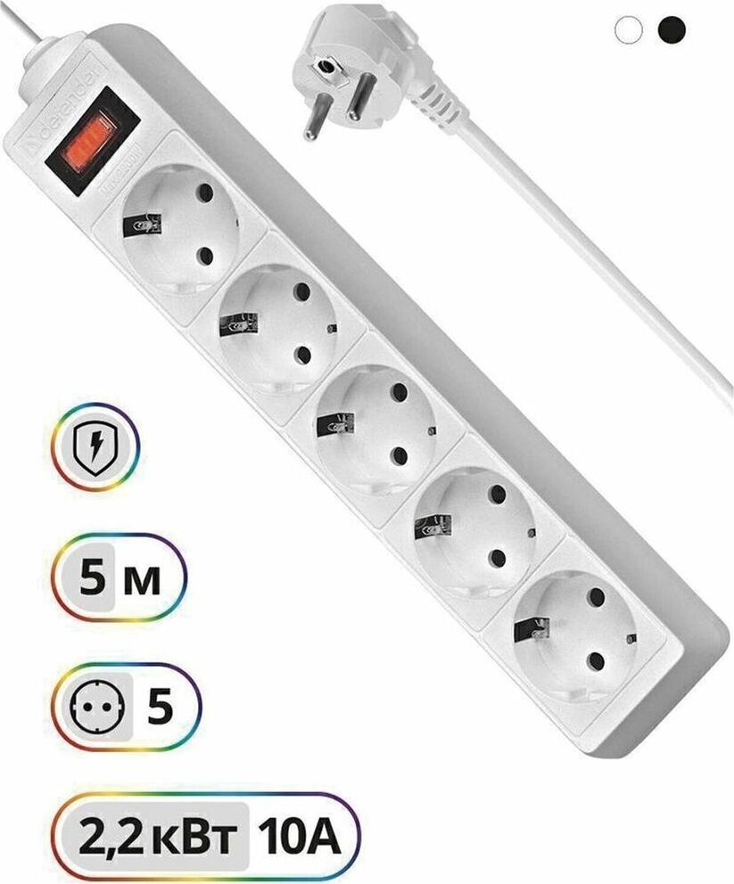 DEFENDER (99483) ES 5.0 сет.фильтр 5роз - 5м - (пакет) белый