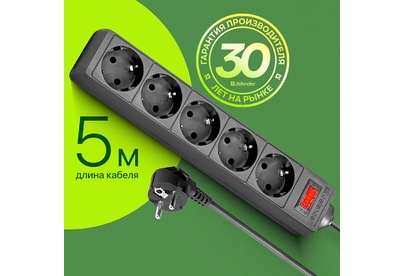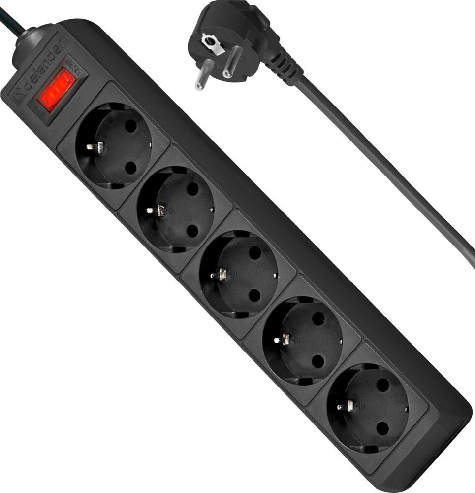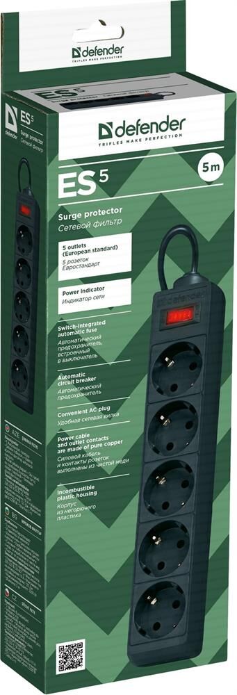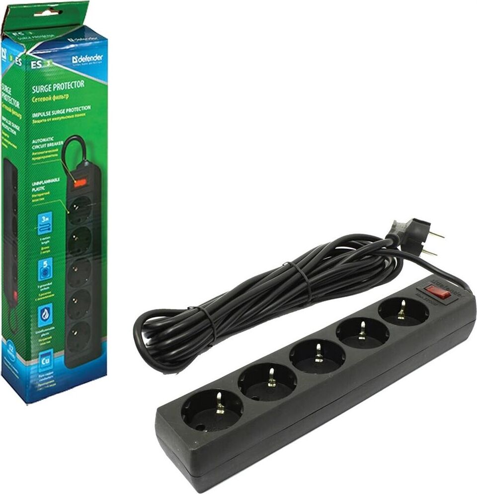 DEFENDER (99486) ES сет.фильтр 5роз - 5м - (пакет) черный