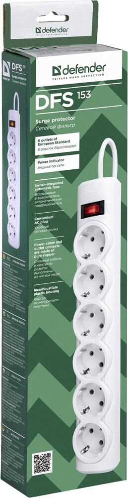 DEFENDER (99490) DFS 153 сет.фильтр 6роз - 3м - белый