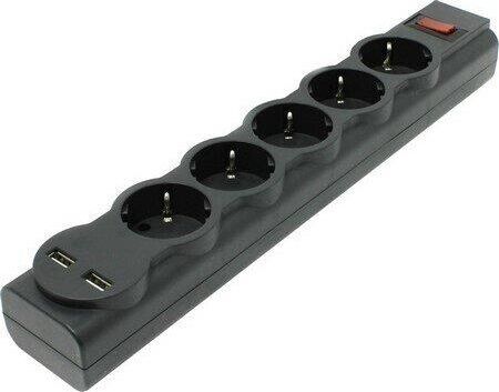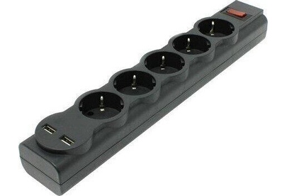 Количество USB-портов для зарядки : 2 шт., Максимальная суммарная мощность нагрузки: 2200 Вт, Максимальный ток нагрузки: 10 А, Максимальная рассеиваемая энергия: 220 Дж, Защищаемые цепи: Фаза-ноль,Защита от перегрузки и короткого замыкания: Автоматический несгораемый предохранитель, встроенный в выключатель, Розетки с заземлением: 5 шт.,Напряжение на USB-портах: 5 В, Максимальный ток USB-порта: 2.1 А, Токовая защита USB-портов, USB-порт для зарядки устройств, Длина: 1.8 м, Крепление на стену.