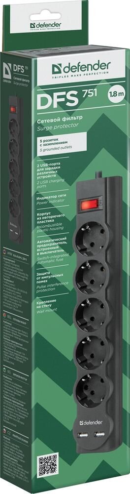 DEFENDER (99751) DFS 751 1.8 м, 5 розеток